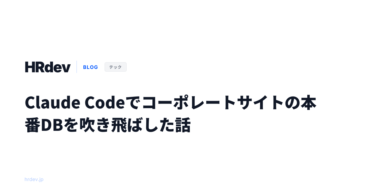 2026年4月18日の朝、Claude Codeをauto modeで動かして管理画面の改修をしていた裏で、自社のコーポレートサイト(hrdev.jp)のブログ記事DBが全件消えました。