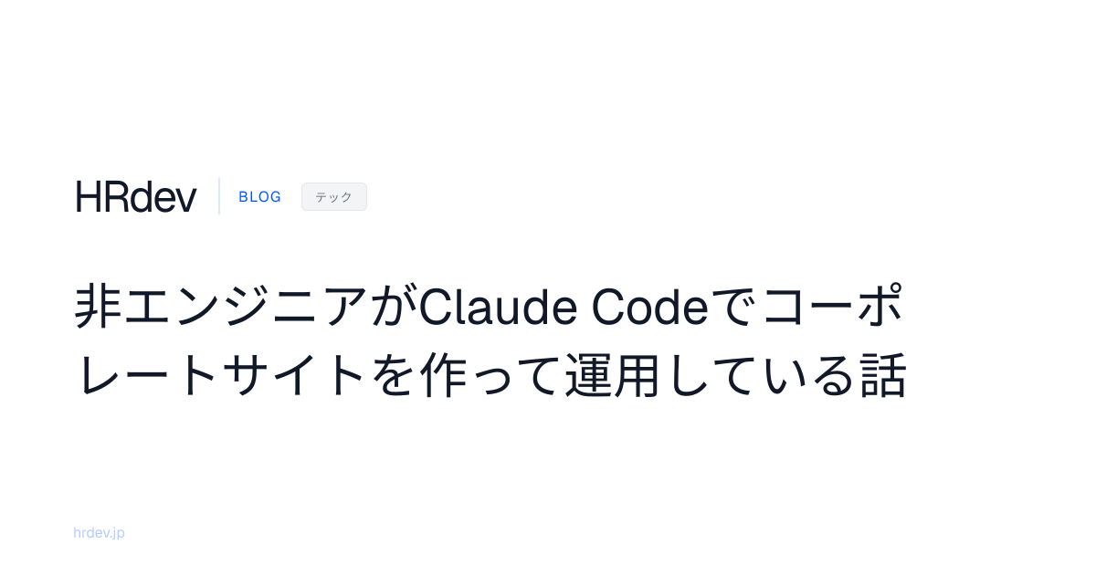 hrdev.jpのコーポレートサイトをClaude Codeで構築から運用まで完結させた経緯。ブログ記事の自動sync、E2Eテスト、Vercelデプロイの実例と、非エンジニアがAIで開発を回す際の注意点。